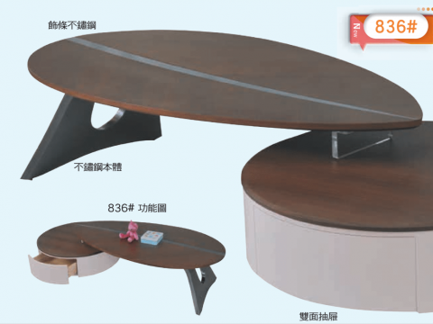 A1457-1 波妮特4尺岩板大茶几 ⊙桌面9mm岩板、 ⊙雙邊造型.雙邊使用$2900