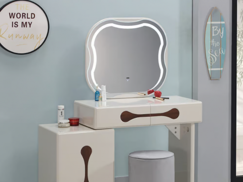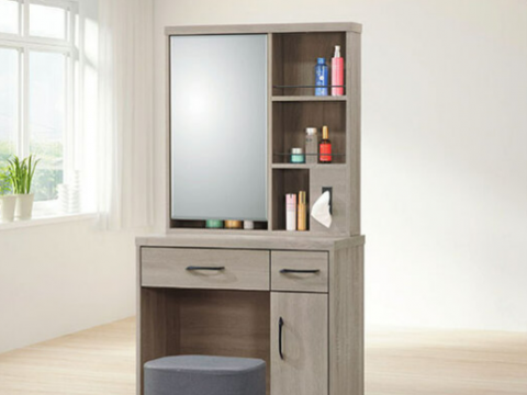 414-6 佛羅安伸縮鏡台 含椅 (地面至桌面高度76cm) (小置物櫃門片由側面右往左開)(附1片活動隔板) (不分左右方向)$7700