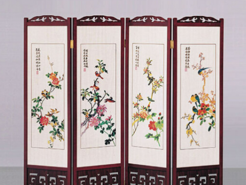 E458-3 彩色花鳥屏風 612紅木 雙面精密印刷$4200