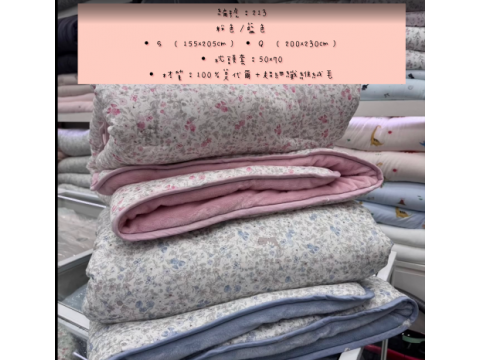 編號:211韓國棉被 顏色:灰/粉/藍色 尺寸:S150*200公分 Q:195*225公分 枕頭套:50*70公分 材質:膠原蛋白天絲+超細纖維絨毛