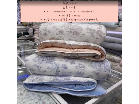 編號218韓國棉被 顏色:藍/米色 尺寸S:160*210公分 Q:200*230公分 枕頭套:50*70公分 材質:100%膠原蛋白天絲+超細纖維絨毛