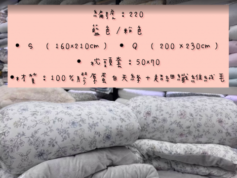 編號:220韓國棉被 顏色:S:160*210公分 Q:200*230公分 枕頭套 50*70公分 材質:100%膠原蛋白天絲+超細纖維絨毛