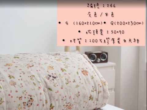 編號:246韓國被 顏色:灰/米 尺寸S:160*210公分 Q:200*230公分 枕頭套:50/70公分 材質:100%膠原蛋白天絲