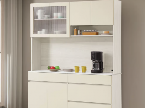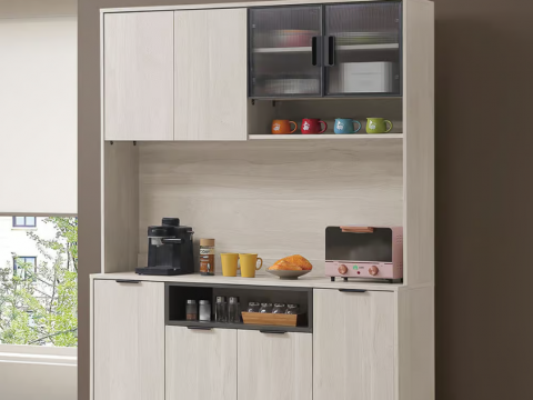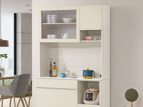 832-5 燕麥4尺岩板餐櫃 上+下 ⊙上座附1個插座、 ⊙附2片活動隔板、 ⊙上座左邊開門為5mm長虹玻璃、 ⊙下座附1個電線孔$15000
