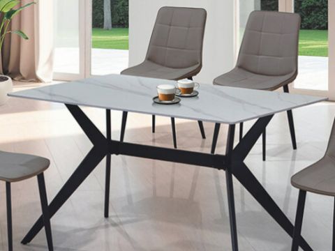 E382-1 班尼岩板餐桌 雪山白岩板、 碳素鋼鐵腳、桌腳DIY$2800