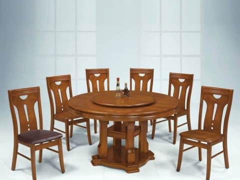 F328-1 1281#4.38尺柚木色餐桌 (配76公分轉盤) 不拆賣$14000