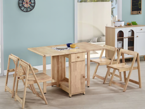 882-2 諾加實木折合桌 ⊙附4張輔助椅.恕不拆賣、 橡膠實木+桌子底板松木複合板$9100