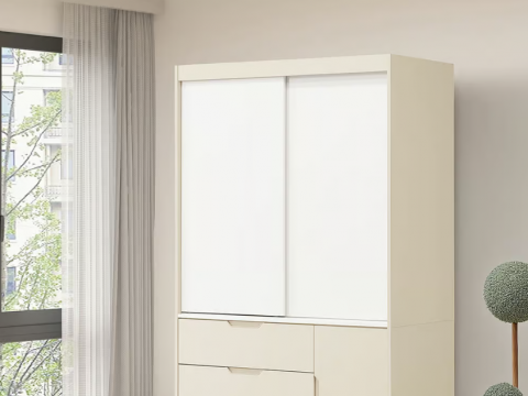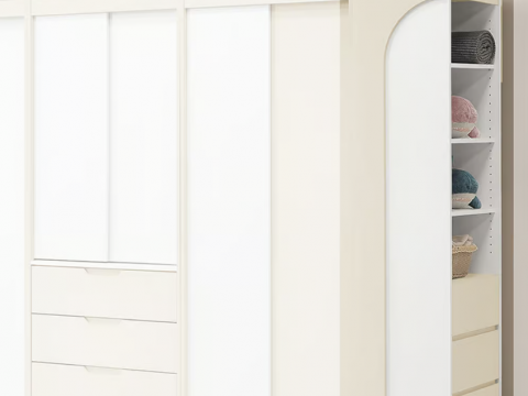 E3-1 米樂實木洗白4*7尺推門衣櫃 單吊 抽屜*6$13500