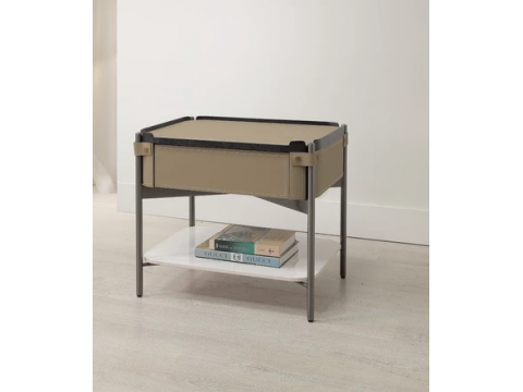 A26-05 尼索斯馬鞍皮岩板床頭櫃$7600