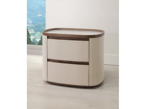 A26-03 洛麗雅馬鞍皮岩板床頭櫃$6800
